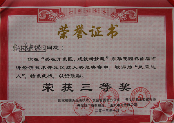 公司印度籍專家以一支全新編排的《江南Style》團體舞贏得了全場的歡呼,以總分第六名的好成績榮獲三等獎,并成為開發區電視臺簽約表演嘉賓。此外,鑒于公司的宣傳團隊在海選及總決賽期間的精心組織與辛勤付出,公司還被授予本屆活動的“優秀組織獎”。