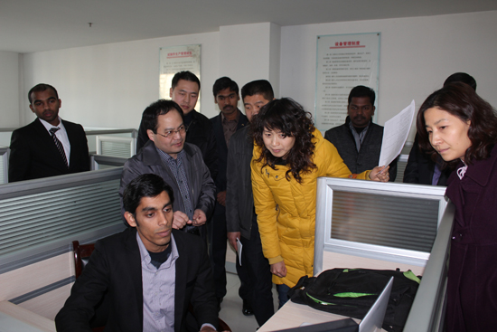 公司作為臨沂市電子信息行業(yè)唯一一家申報(bào)博士后工作站的單位,臨沂市人力資源和社會(huì)保障局對(duì)此高度重視。高科長此行主要考察公司申報(bào)博士后工作站的準(zhǔn)備情況,對(duì)公司的基礎(chǔ)設(shè)施、研發(fā)實(shí)力、實(shí)驗(yàn)室、經(jīng)營實(shí)力等進(jìn)行詳細(xì)調(diào)研。在聽完張金剛經(jīng)理的匯報(bào)后,高毅科長對(duì)公司提出了兩點(diǎn)建設(shè)性意見:一是要重視外籍專家團(tuán)隊(duì)的影響力,充分發(fā)揮其在科研崗位的帶頭作用;二是要積極申報(bào)承接國家重點(diǎn)項(xiàng)目,如國家“863計(jì)劃”、“星火計(jì)劃”等項(xiàng)目,以進(jìn)一步提升技術(shù)實(shí)力和行業(yè)知名度。 隨后,高科長一行參觀了公司的技術(shù)部門,并觀看公司印度專家演示應(yīng)用軟件生成平臺(tái)(AMS)。張經(jīng)理介紹說,有了這個(gè)平臺(tái),以后做軟件就不用費(fèi)時(shí)費(fèi)力寫代碼了,即便是新手在經(jīng)過短期培訓(xùn)后,也能輕松地制作軟件,可以極大地提高生產(chǎn)力。  |